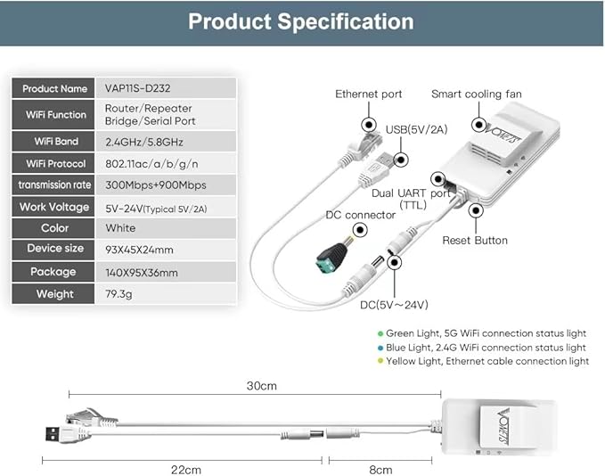 - 【2025 New Upgrade】 New Process Design, Super Stability, A new independent cooling fan is added to adapt to various complex environments.Unlike VAP11S, it turns the network port of VAP11S into RS232 serial port, which can be used for RS232 devices through accessories and is dual-band (2.4G + 5G)