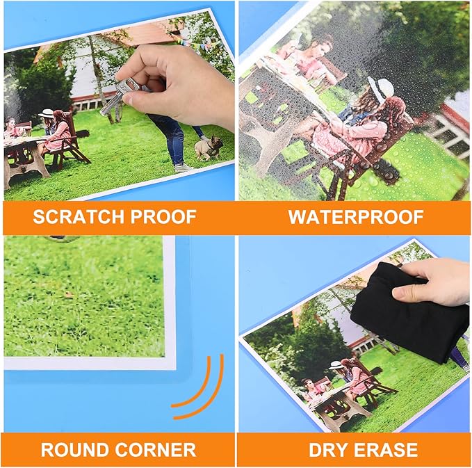 - Premium Material: Crystal clear, glossy sheen, sturdy and Premium material. Laceration resistant, double coating, anti-stain, sturdy and waterproof, protect your document from scratching