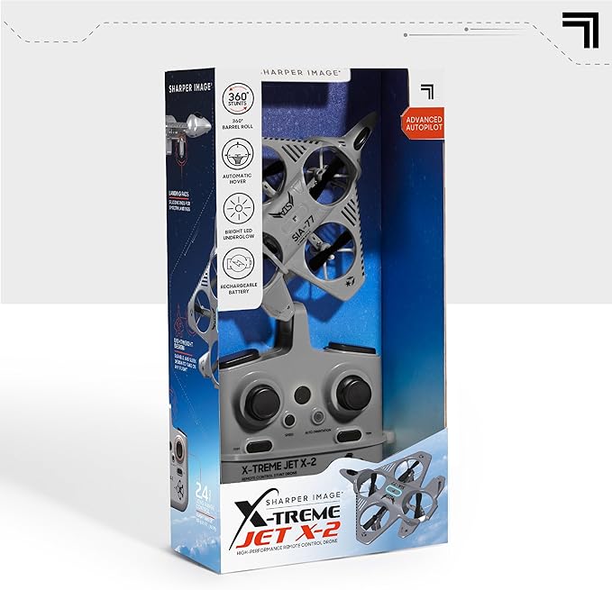 - ✔ EPIC AERIAL STUNTS: Master the skies with the Sharper Image X-Treme Jet X-2 Drone, capable of performing jaw-dropping 360-degree stunts and barrel rolls, promising an action-packed drone flying experience.