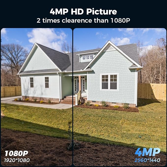 - 【4MP HD Video & Full Color Night Vision】: With its 4MP(2560*1440, almost 1.5 times than 1080P) high-definition lens, led spotlight and high quality full-color night vision capabilities, this hd security camera provides crystal clear images around the clock. Whether it's daylight or darkness, you'll always have a detailed view of your surroundings. The wifi wireless security camera is compatible with Hiseeu other wireless system.