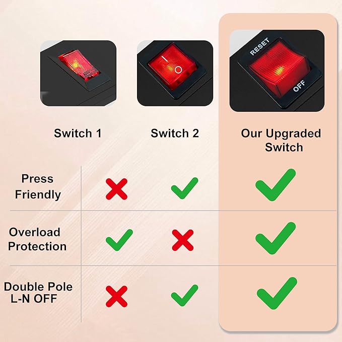 - ✅Heavy Duty Power Strip: Sturdy construction with thick aluminum metal housing, High-density PVC power cord features a durable wire, 100% copper 3-prong wire has more stable conductivity and less heating.