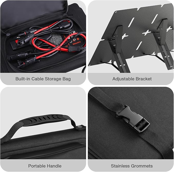 - PERFECT CHOICE FOR OUTDOORS - Compact solar panel charger can be 8 folded down to the size of a small handbag with a handle and built-in zipper accessory pouch, can be easily squeezed into your any backpack, offering portability and simplicity. Equipped with metal hanging holes, you can easily hang it on your tent, RV, backpack or a tree to get solar energy while RV camping, on off-grid trips, hiking, climbing, etc.
