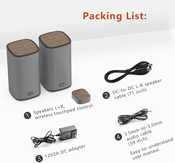 - The unique wireless touch control pod, resembling a computer mouse, adds a touch of innovation. You can easily control the speakers at anywhere in the room wirelessly with a simple touch. The touch pod provides easy control over all functions which enhances the user experience.