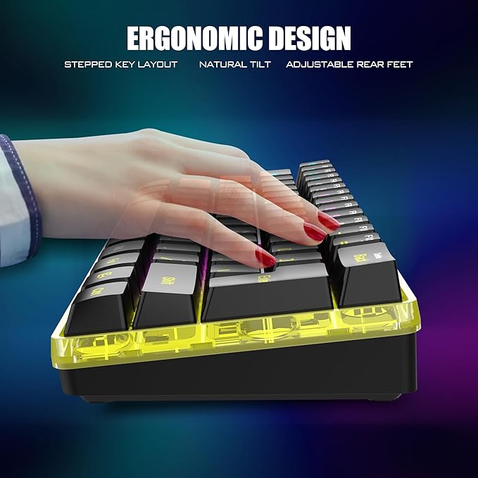 - 【60% Compact Small Keyboard and Ultra-light Honeycomb Shell Mouse】The most delicate and cute keyboard keeps your desktop neat, more space for mouse movement and other desktop devices. The well-designed perforated honeycomb shell mouse is ergonomically designed and weighs only 65 (+-5) grams, making it more flexible and comfortable without fatigue.The small keyboard and mouse combo will be the best choice for gamers.