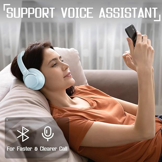 TUINYO Wireless Headphones - Noise Cancelling Over Ear Bluetooth Headphones with 60H Playtime, Deep Bass Hi-Fi Stereo Sound & Comfortable Earpads for Travel, Home and Office-Blue Gray…