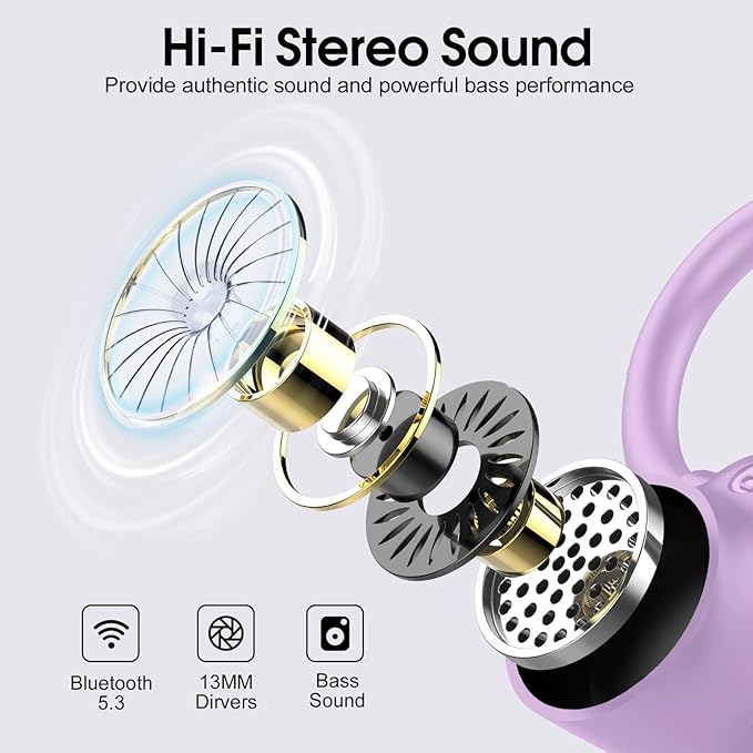 - Immersive Sound and Crystal Clear Call: A tiny yet powerful 13mm driver unit sits inside the earbuds, which makes the bass more punchy and the midrange full and textured. The unique stereo design gives you the perfect sound, and you can feel the more realistic music. Whether you are indoors or outdoors, you can enjoy a musical feast! ENC noise cancelling technology filters out environmental noise, allowing you to enjoy crystal clear calls, as if you are communicating face to face with others.