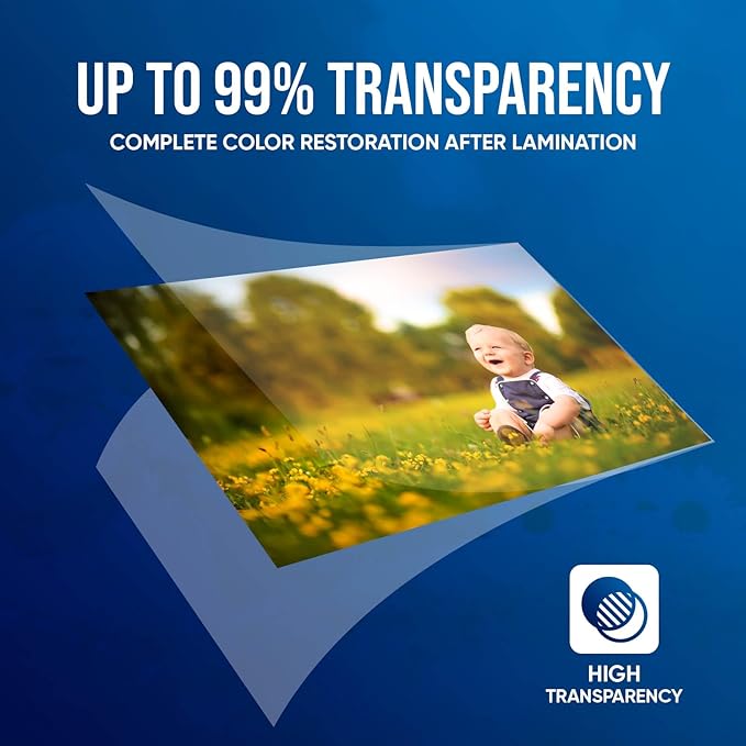 - UP TO 99% TRANSPARENCY - Experience unparalleled clarity with up to 99% transparency after lamination. Rolett laminating pouches sheets guarantee complete color restoration, preserving the vibrancy and sharpness of your photos and documents. Choose our laminating sheets for a perfect blend of protection and visual appeal.