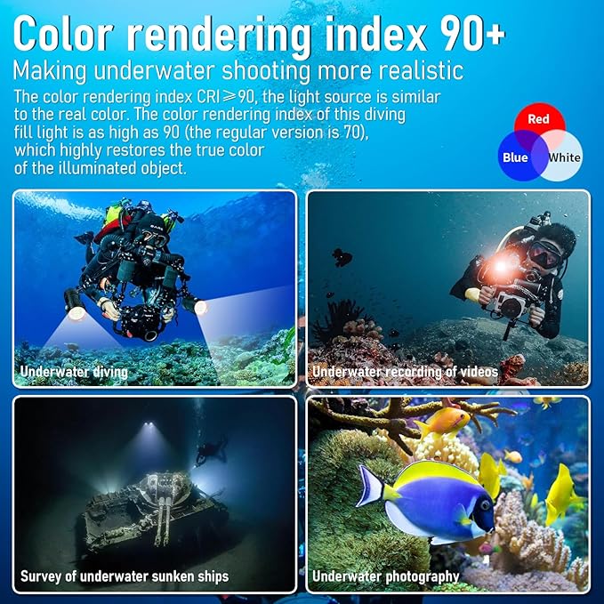 B24 Dive Light Underwater Flashlight 9000Lumens Underwater Video Lights 80m Scuba Dive Light Diving Flashlight for Under Water Sports,Underwater Video Shooting and Photography
