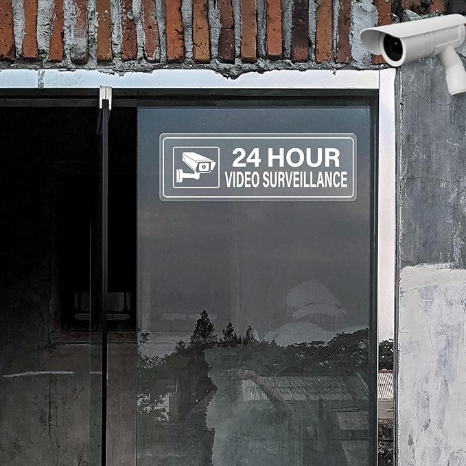 Video Surveillance Sticker Vinyl 6 x 2 Inch 24 Hour CCTV Camera Warning Security Decal for Window Door Business 10 Pack