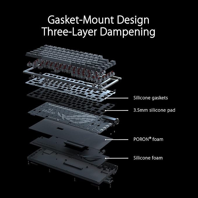 - Gasket Mount & Premium Sound Tuning: A silicone gasket mount and three layers of integrated dampening foam work in harmony to absorb vibrations and eliminate pinging noises, creating a uniquely satisfying sound signature and a consistent, flex-free typing feel.