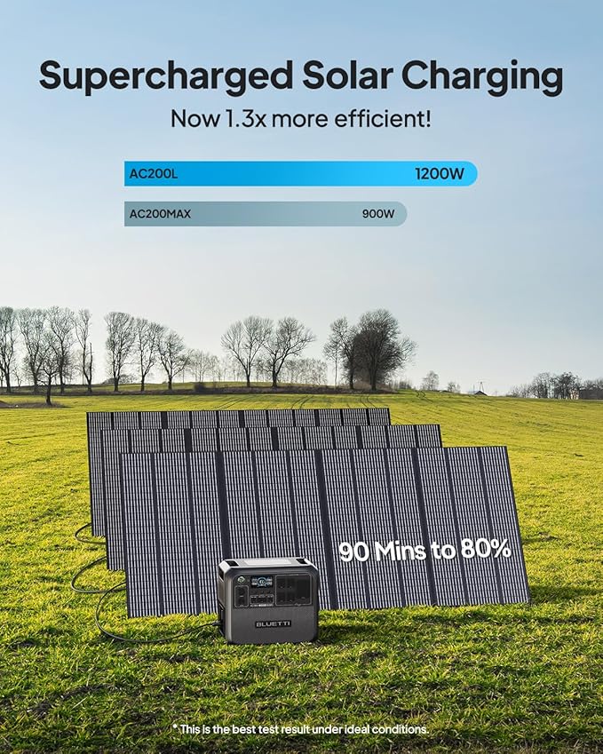 - [45 Min. Fast Recharge] - AC200L supports a max 2400W AC charging input, 0-80% only takes 45 mins. And up to 1200W solar input makes this power station fully charged in 1.7-2.2 hours.