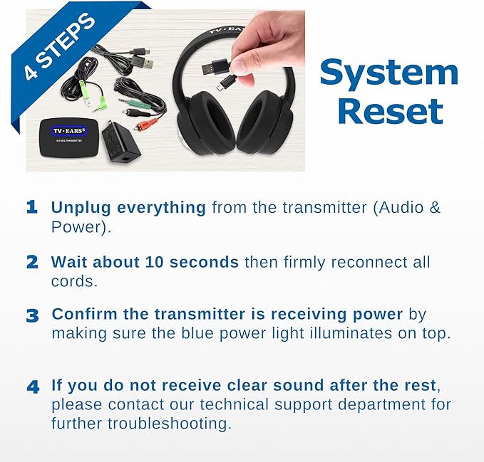 - HASSLE-FREE SETUP: Our wireless TV headphones are designed to be easy to use. They come pre-paired with the transmitter, so you don't need to set them up. You can easily connect them to your TV and adjust the sound.