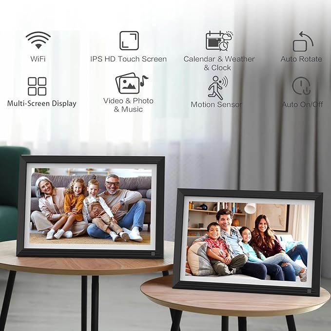 - Vivid Views for Timeless Memories: Relive your most vibrant moments in stunning clarity with our 10.1-inch digital picture frame. The 1280x800 HD IPS screen displays incredibly crisp, detailed photos from any angle. Easily share your favorite memories with family and friends right from the Wi-Fi digital photo frame. With unparalleled realism, create an endless gallery of your most cherished photos.