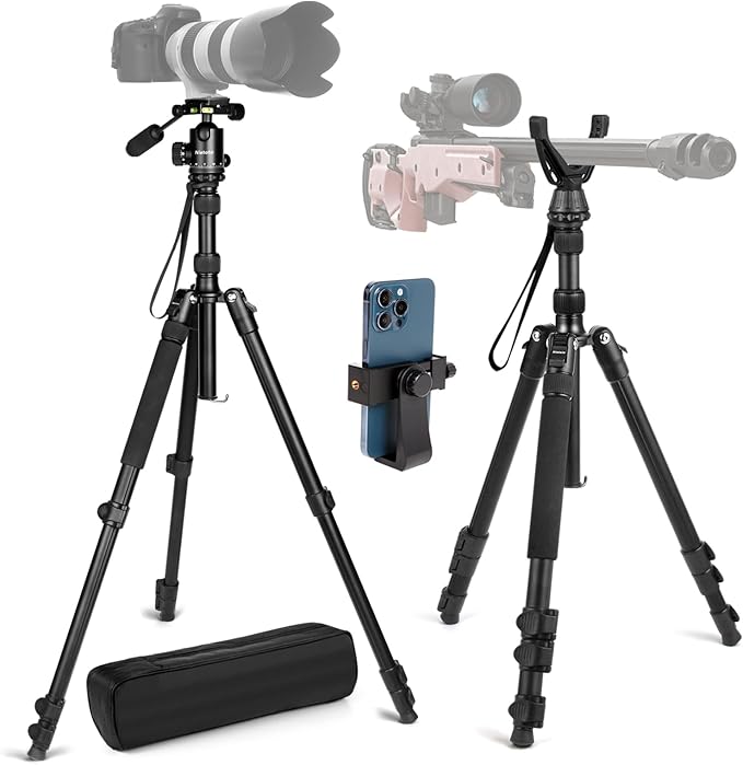 2 in1 Tripod for Camera & Hunting Tripods, 68" Camera Tripods & Monopods with Removable Handle, Aluminum Rifle Tripod & Shooting Stand, Heavy Duty Tripods for DSLR,Canon,Nikon,Sony, Extra Carry Bag