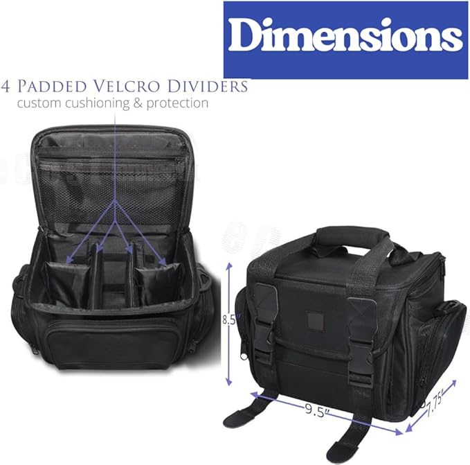 - Customizable Interior for Pro Organization – Includes 4 removable padded dividers and 5 storage pockets: a large main compartment, 2 side pockets, front zippered pouch, and internal mesh pocket. Keep your gear in order with this highly functional digital camera case, camera equipment bag, and Canon carrying case