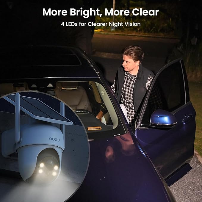 AOSU Security Cameras Outdoor Wireless, 2 Cam-Kit, No Subscription, Solar-Powered, Home Security Cameras System with 360° Pan & Tilt, Auto Tracking, 2K Color Night Vision, Easy Setup, 5G & 2.4G WiFi