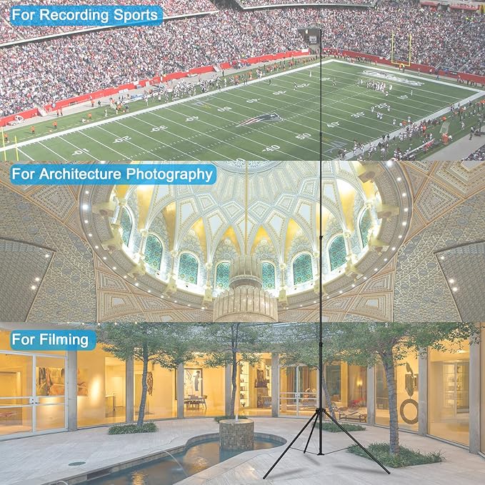 - Excellent Shooting Angles: The tall tripod opens up new photographic angles. As an entry-level stand, it provides a fantastic new perspective for panoramic photography. It is suitable for shooting sports events in high-ceiling venues. For football and basketball games, the tripod stand works seamlessly with a sports pan head to achieve professional-grade shooting angles