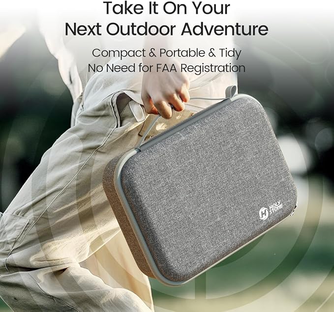 - ๐๐ถ๐ด๐ต๐๐๐ฒ๐ถ๐ด๐ต๐ ๐ฎ๐ป๐ฑ ๐๐ผ๐บ๐ฝ๐ฎ๐ฐ๐ ๐ณ๐ผ๐ฟ ๐๐ฎ๐๐ ๐ง๐ฟ๐ฎ๐๐ฒ๐น: The Holy Stone 4K GPS Camera Drone folds up neatly and comes with a carry case, perfect for taking on your outdoor adventures, whether it's hiking or hitting the beach.