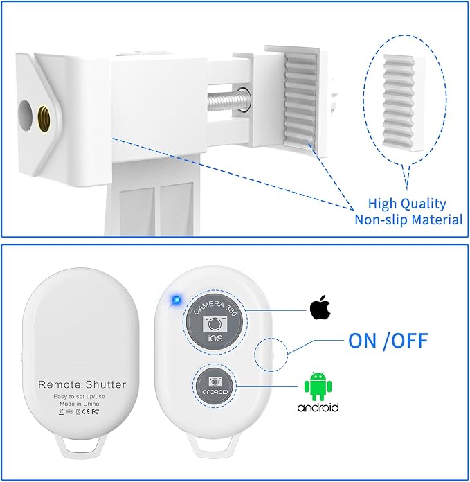 - Wide Range of Devices Compatible: Compatible with Most CELLPHONE, Including for iPhone 15 14 pro max 14 plus 13 12 11 mini, SE, Xs xs max XR X, 8, 8 Plus, 7, 7 Plus, 6, 6 Plus; for Samsung Galaxy S22 S21 S20 S10 S10 plus S9+, S9, S8, S7, S7 Edge, S6, S6 Edge, S5, S4, S4 Mini, S5, S5 Mini, Note 20, Note 10 Note 8; Cameras, Camcorders and other devices (width between 56mm - 105mm ) . WHAT YOU GET:1x phone tripod mount adapter 1x remote shutter 1x hand strap, 12 Months warranty