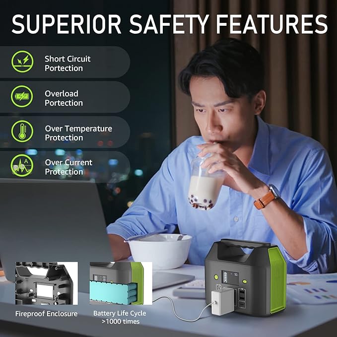 - Reliable Emergency Back-up Power Supply, long lifetime with multi-protection, 1000 charge/discharge cycles with smart battery management system, protects against overloading, overcharging and over discharging, overheating, and short circuits