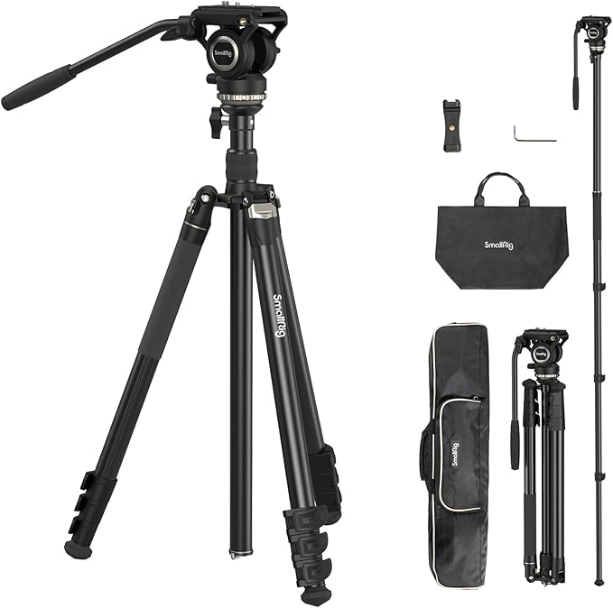 SmallRig CT210 Video Tripod, 75" Video Camera Tripod Monopod with +/-15° Leveling Base Fluid Head, Professional Camera Tripod Compatible with Video Camera, DSLR, Camcorder-4475