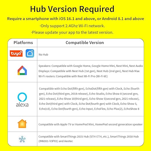 - [App and Voice Control] Can be connected via traditional wifi connection or matter. No hub required for wifi connection. Just use the free and hub-free Smart Life APP or Minoston APP to add this wifi smart plug. It can be controlled using voice command. Compatible with Siri, Alexa, Google Assistant and Smartthings (hub required). Update the hub to the lastest version before you add it