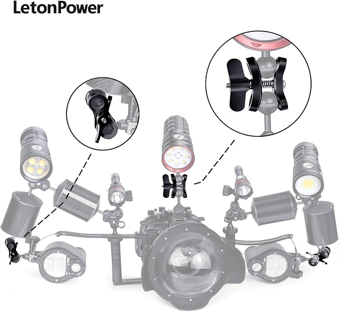 - 【360° Rotation】The ball clamp mount allows for 360-degree rotation, making it easy to connect a fill light, flashlight, arm, float tube or action camera, providing a versatile underwater photography experience