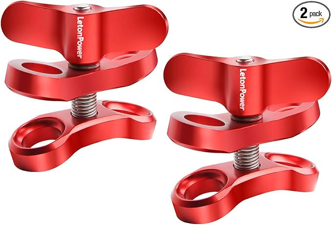 2-Hole 1" Aluminum Underwater Camera Clamp Ball Mount (2-Pack) - Underwater Bracket for Diving Light Arms & Camera Trays, Saltwater-Resistant Adapter for Scuba Photography/Videography Gear