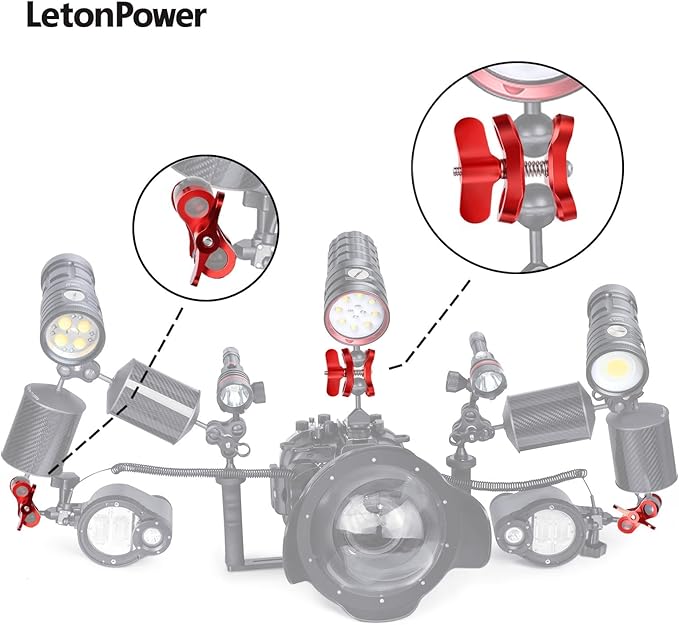 - 【360° Rotation】The ball clamp mount allows for 360-degree rotation, making it easy to connect a fill light, flashlight, arm, float tube or action camera, providing a versatile underwater photography experience