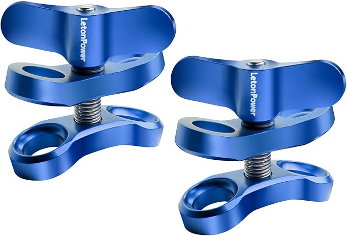 2-Hole 1" Aluminum Underwater Camera Clamp Ball Mount (2-Pack) - Underwater Bracket for Diving Light Arms & Camera Trays, Saltwater-Resistant Adapter for Scuba Photography/Videography Gear