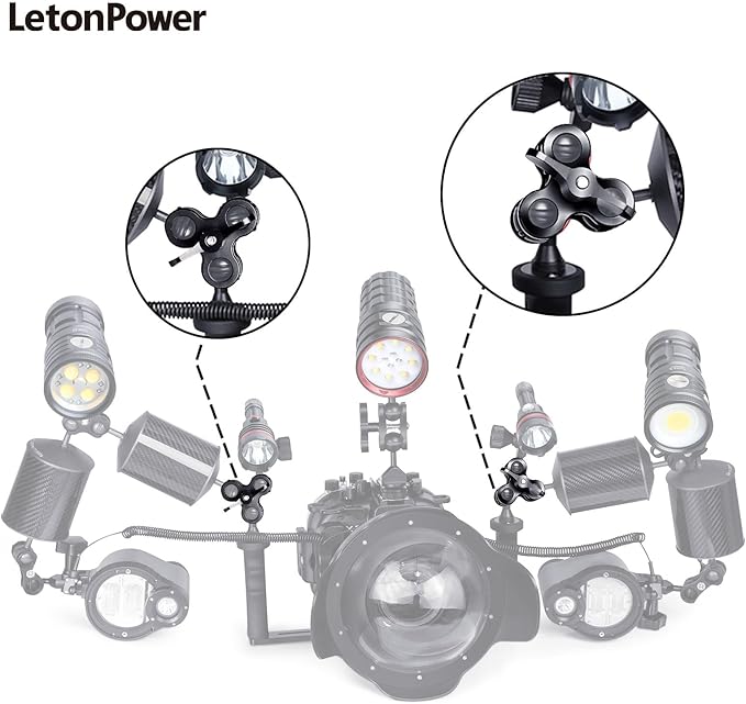 - 【360° Rotation】The ball clamp mount allows for 360-degree rotation, making it easy to connect a fill light, flashlight, arm, float tube or action camera, providing a versatile underwater photography experience