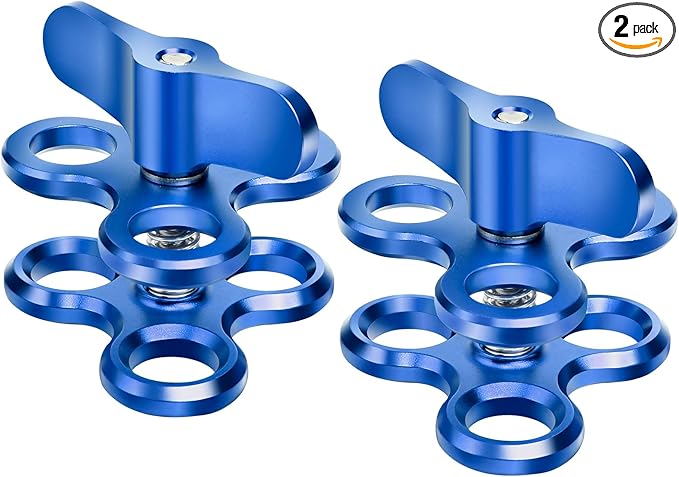 3-Hole 1" Aluminum Underwater Camera Clamp Ball Mount (2-Pack) - Underwater Bracket for Diving Light Arms & Camera Trays, Saltwater-Resistant Adapter for Scuba Photography/Videography Gear