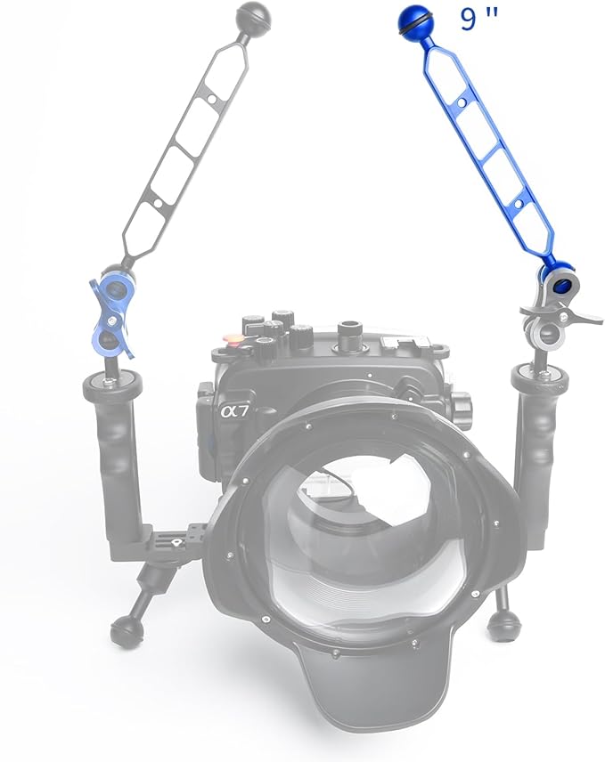 - 【Quality materials】9" Double Ball Aluminum Alloy Extension Arm is made of aircraft-grade aluminum alloy with hard oxidation treatment to resist deep-sea corrosion. The skeletonized design makes it lighter in weight and less resistance when used underwater, making the camera equipment easier to operate and control, making it the ideal dive gear for underwater diving photography.