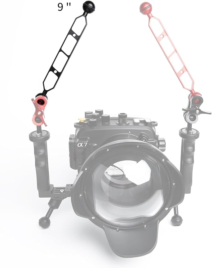 - 【Quality materials】9" Double Ball Aluminum Alloy Extension Arm is made of aircraft-grade aluminum alloy with hard oxidation treatment to resist deep-sea corrosion. The skeletonized design makes it lighter in weight and less resistance when used underwater, making the camera equipment easier to operate and control, making it the ideal dive gear for underwater diving photography
