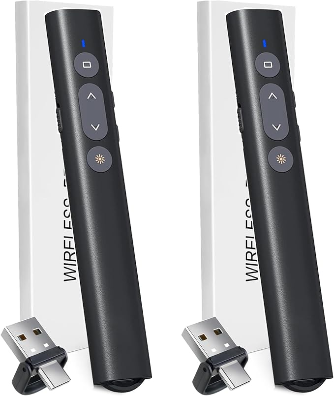 (2 Units) Presentation Clicker for PowerPoint Red Laser Pointer, USB A C Wireless Presenter Remote, Google Slide Advancer Projector Smart Board Slideshow PPT Clicker for Mac/Laptop/Computer/Office