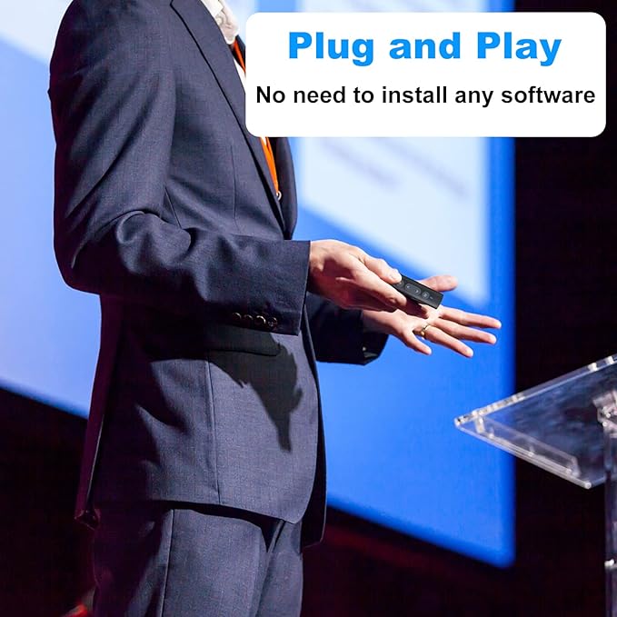 - [Easy to Use] No need to install any software, just plug and play. Wireless presentation clicker connection is fast and accurate, so you have no frustrations during the presentation. The clicker for laptop presentations supports red pointer, page up/down, black/full screen, volume up/down.
