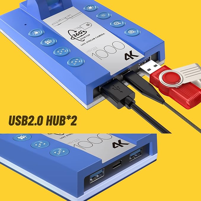 - 【With Powerful Functions】The USB Camera with powerful functions:【Zoom in and Zoom out:+-】【ISO:+-】【Fixed Focus:FF】【Auto Focus:AF】【LED ON/OFF】【Image Reversal:Left right mirror switching/up down mirror switching】【USB 2.0 HUB support USB2.0 devices,e.g.USB MIC/USB disk/USB headset】