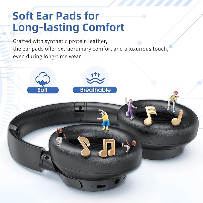 - [70 Hours Playtime,Ultra-long battery life] Our over ear headphones offer up to 70 hours of listening time of in ANC OFF mode. And a 5-minute recharge gives you up to 4 hours of use. It also comes with a 3.5mm audio cable, so when the battery runs out, you can effortlessly switch to wired mode to ensure uninterrupted listening,ideal for long trips. Note: If you do not use ANC mode, please turn off ANC to avoid power consumption.