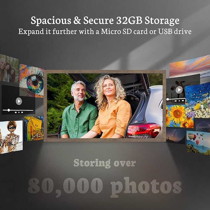 - Professional Large Digital Picture Frame: This photo frame electronic showcasing your art collection and cherished memories with sharp datails and extra-clear images for an even more expansive and enriching viewing experience. The electronic picture frame enable you to share video clips and photos securely and privately via WiFi from anywhere via VPhoto app & email, you can share the digital picture frames load from phone code with your friends, and invite them to add photos to the same frame, enjoy and view everyone's pictures, which makes the photos displayed in one place to bring all precious moments to alive.