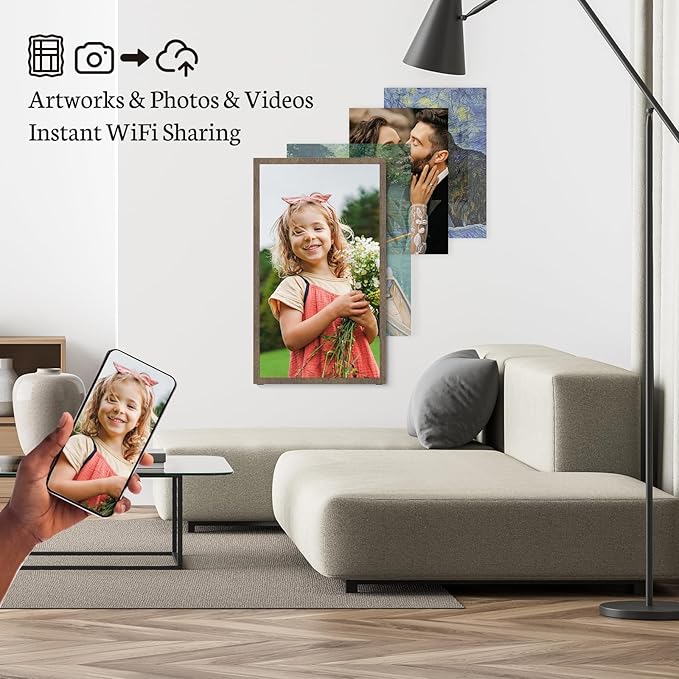 - Apply to Any Scenes: Wall-mounted design makes it can be easily rotated when mounted on the wall for better viewing experience (NOTE:Swivel wall mount not included), you can enjoy the lifelike images like standing in a gallery with art painting decoration. This digital frames for photos can find applications in a variety of scenarios such as offices, restaurants, hotels, exhibitions and more. It can also display family photos in the living room, products in the office, events in shops, menus in restaurants and more. With its sleep mode function, you can conveniently schedule the digital frame and switch it off to enhance convenience of your daily life. It's perfect for life and work.