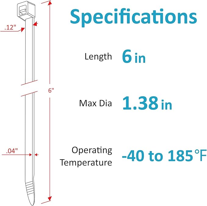 - Indoor/Outdoor Use: Our 6 inch zip ties can be used for home, garden, garage