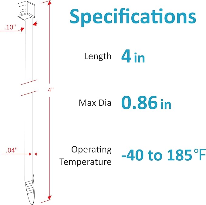 - Indoor/Outdoor Use: Our 4 inch zip ties can be used for home, garden, garage