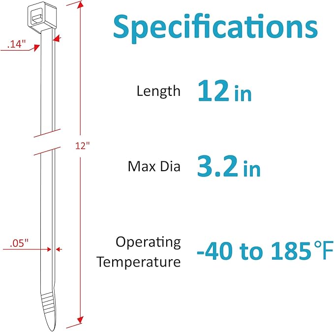 - Wider: Our 12 inch wire ties width is 0.14", wider than industry standards(0.12")