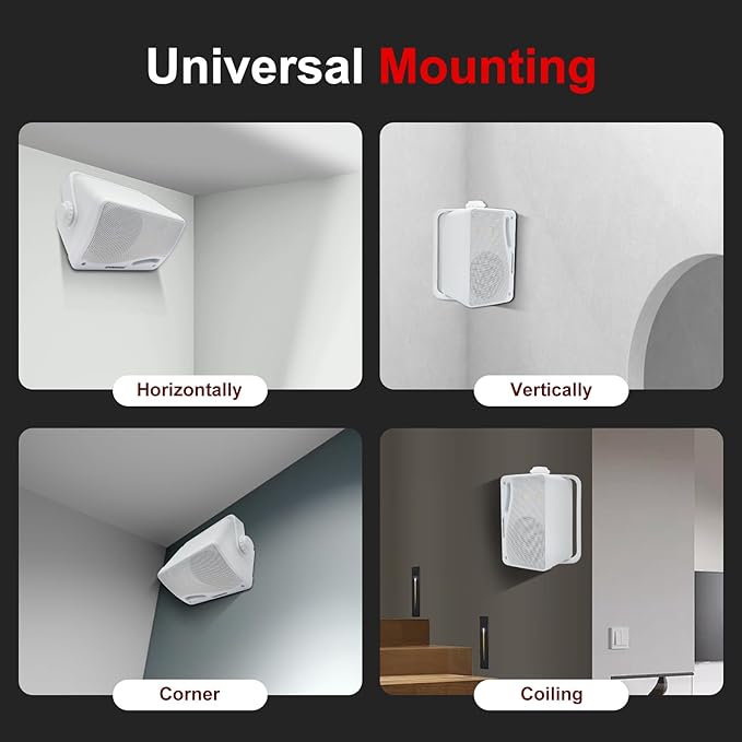 - 【3.5mm Aux Input Jack】The outdoor wired speakers has a built-in AUX 3.5mm input jack so you can connect additional external devices to your speaker system, such as mobile phone, laptop, computer, home theater, television, CD player,offering a seamless audio experience across multiple devices.