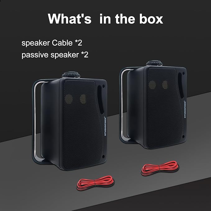 - ● Marine Grade Speaker System:Reliable-quality audio on your boat, deck, poolside or outdoors! Includes 3. 5 Inch outdoor box speakers and complete mounting kit wires.