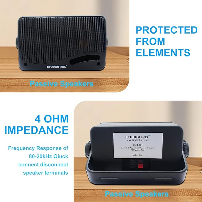 STUDIOFINIX Passive Outdoor Speakers Wired Waterproof -3.5 Inch 3 Way 200W Surface Marine & Wall Mount Speakers, Ideal for Home, Boat, Poolside, Patio, Indoor Outdoor Use(Black