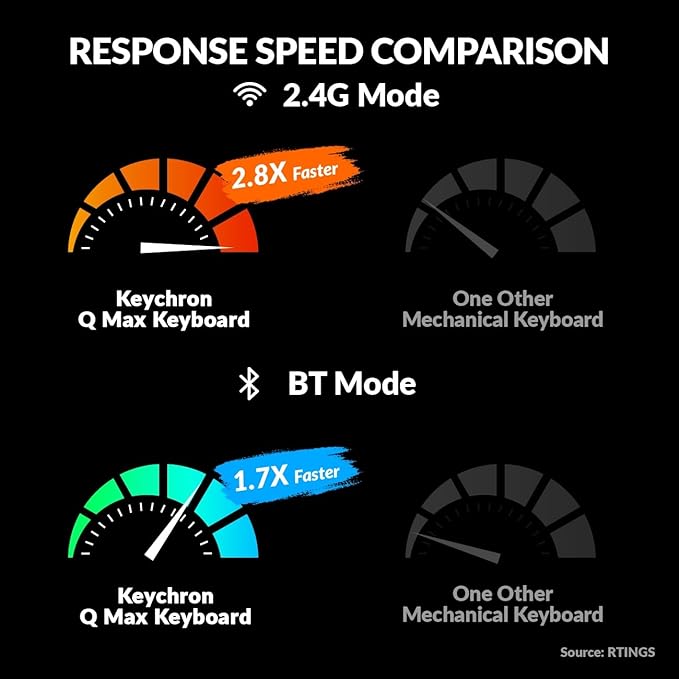 - Program The Q6 Max with QMK & VIA - Remap any key, and create macro commands, shortcuts, or key combinations through the QMK/VIA. The polling rate is 1000 Hz right out of the box on 2.4 GHz and wired modes (90 Hz on Bluetooth mode), which makes the latency hardly noticeable even in competitive games.
