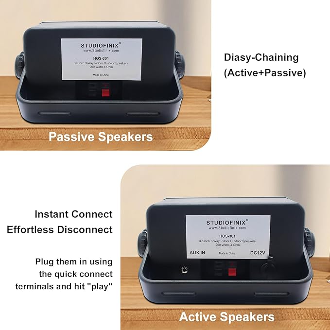 - 【3.5mm Aux Input Jack】The outdoor wired speakers has a built-in AUX 3.5mm input jack so you can connect additional external devices to your speaker system, such as mobile phone, laptop, computer, home theater, television, CD player,offering a seamless audio experience across multiple devices.