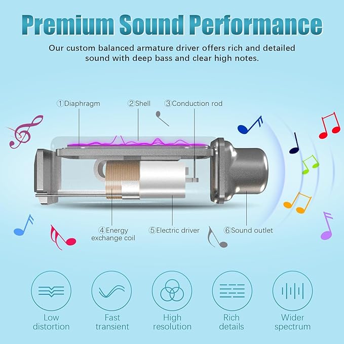 - Pleasant Vivid Sound -- These earbuds boast a hybrid design with a single custom-tuned balanced armature driver for each earbud, delivering powerful and vivid stereo sound with deep bass. The aluminum alloy cavity ensures stable audio output without interference from external signals.