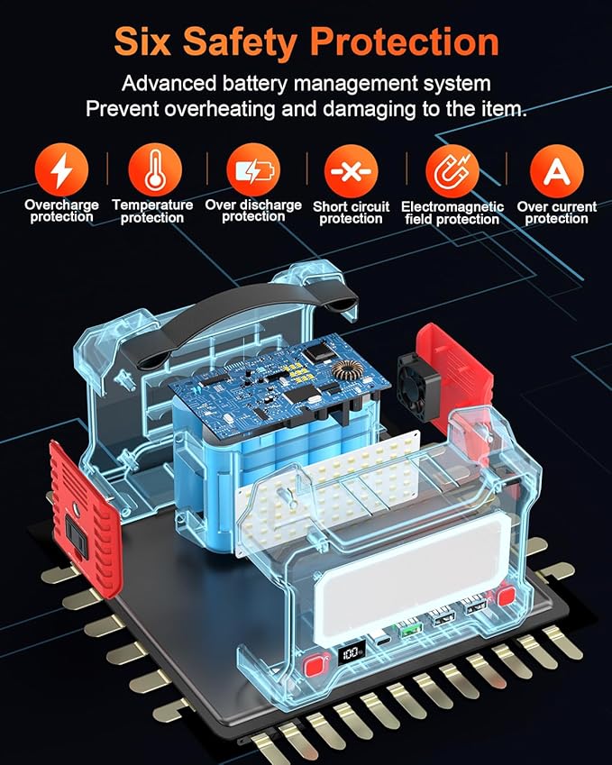 - 【A must have Power Station】45000mAh capacity ( 166.5Wh/3.7V ) with LED light, Type-C port PD 65W Fast Charging output, DC 63W(MAX) output, AC 150W (110V/60Hz) output, USB A fast charge output. It is a good choice for indoor home emergency power outage, it can supply you light in the dark and keep your phone, Laptop, Home AC appliances (within 150W). No fears about power outage in hurricane, storm weather. It is also a good partner for outdoor Activities like Camping, Rv Travel, Stargazing, etc. Unleash Your Power Anywhere with this Portable Power Station.